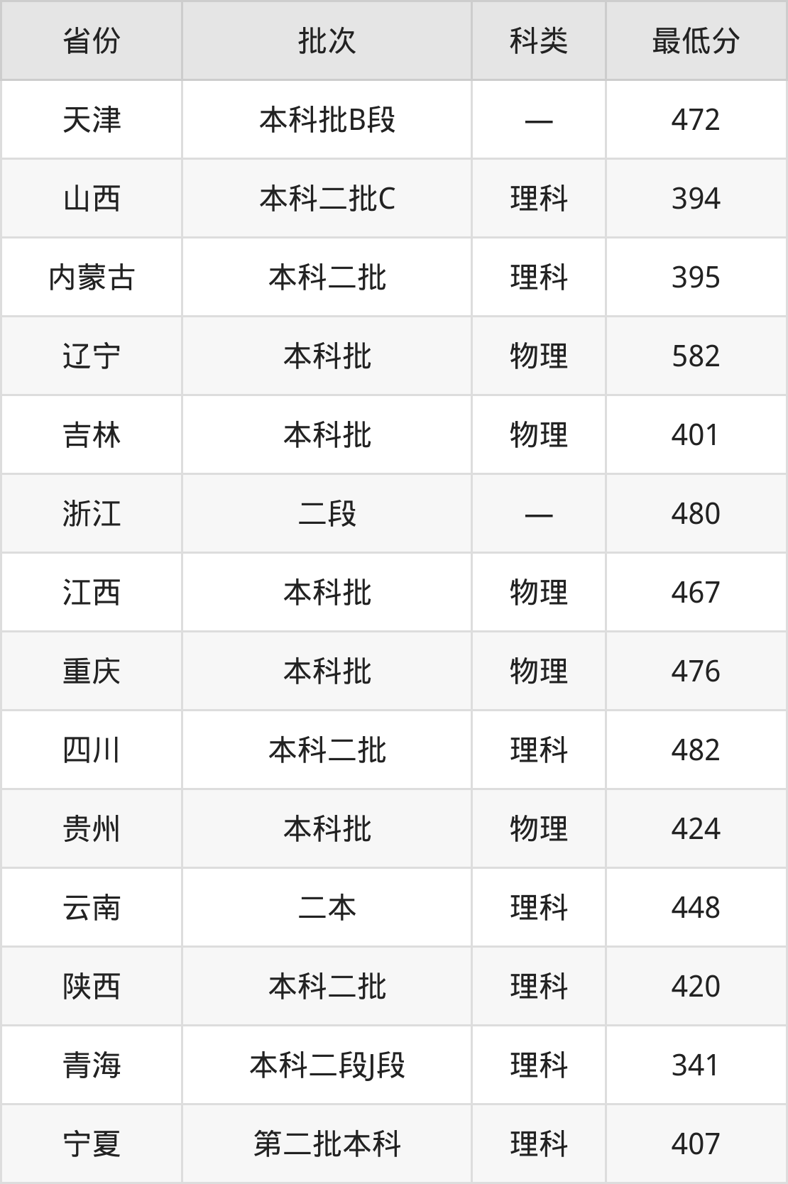 昆明理工大学津桥学院电气工程及其自动化专业录取分数线从341分到582分不等,在部分地区的最低分数线如下: