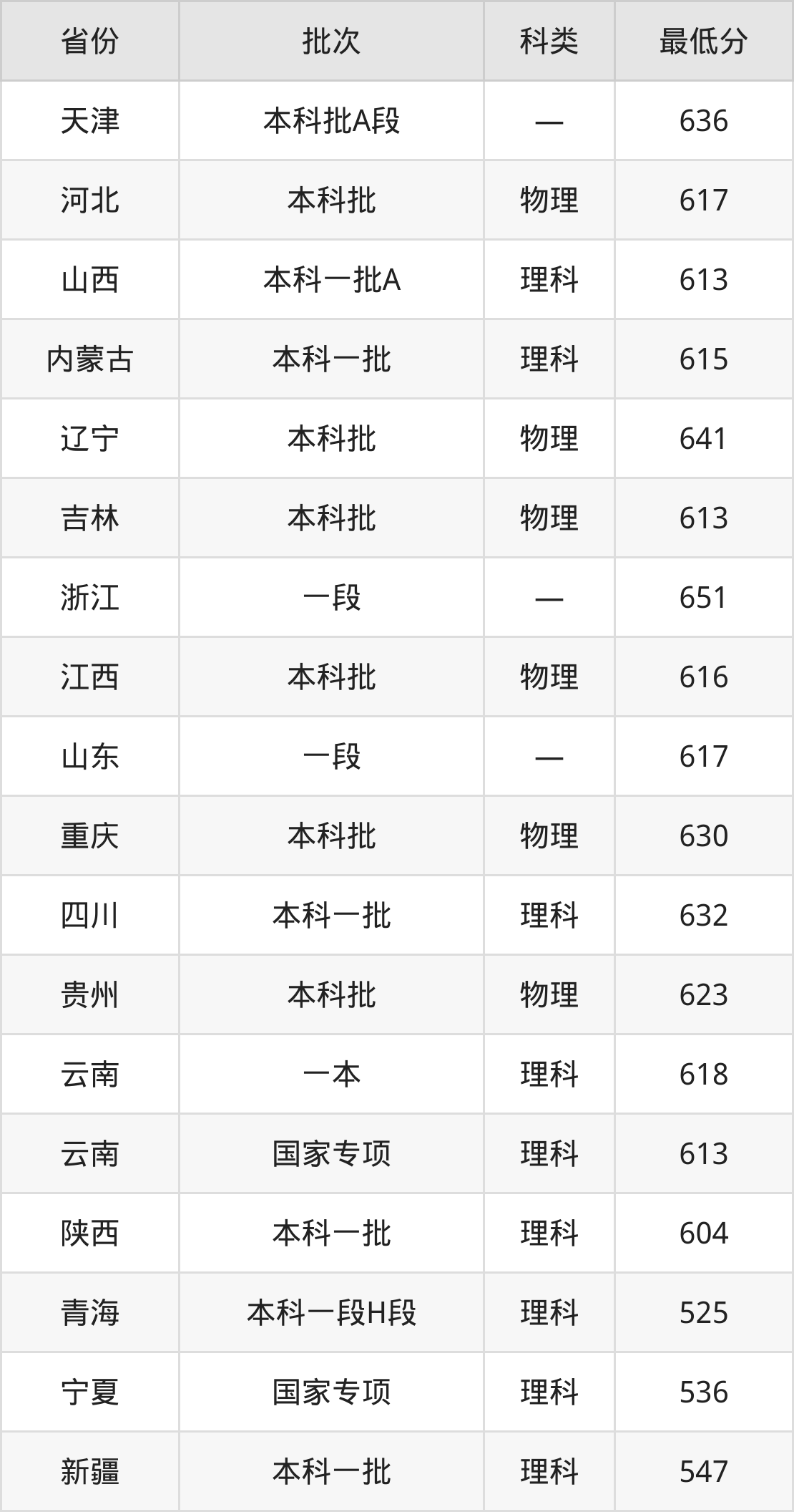 中国农业大学动物科学专业录取分数线从525分到651分不等,在部分地区的最低分数线如下: