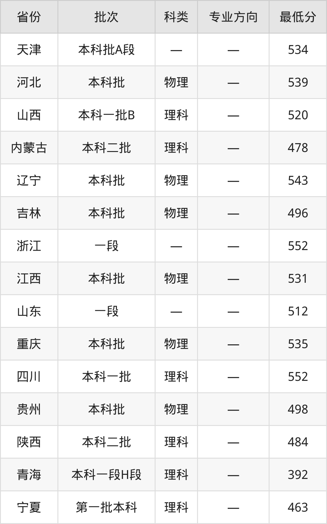 河南工业大学食品科学与工程类专业录取分数线从392分到552分不等,在部分地区的最低分数线如下: