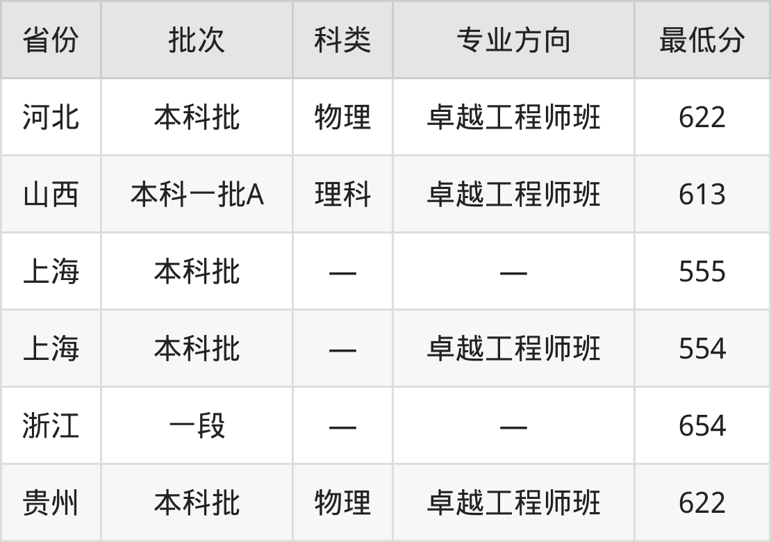 上海大学通信工程专业录取分数线从554分到654分不等,最低分数线如下: