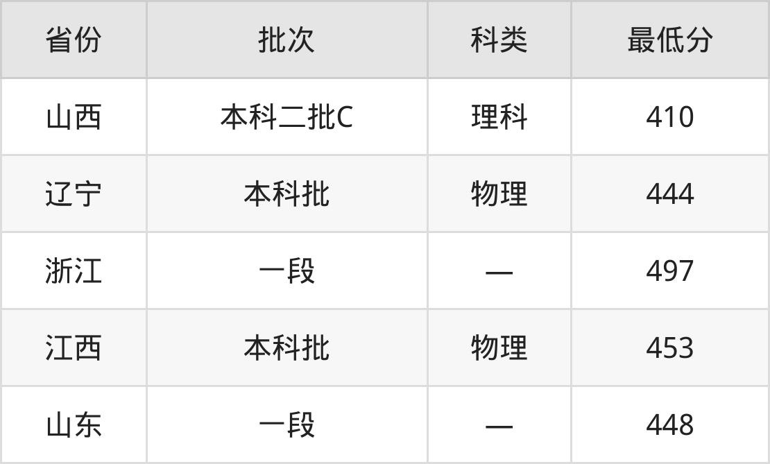 南昌交通学院自动化专业在全国各省最低录取分数线为410分(山西理科),除此之外,在其余地区的最低分为辽宁物理类444分、浙江497分、江西物理类453分、山东448分,以上数据均为2024年数据,供2025年高考生参考。