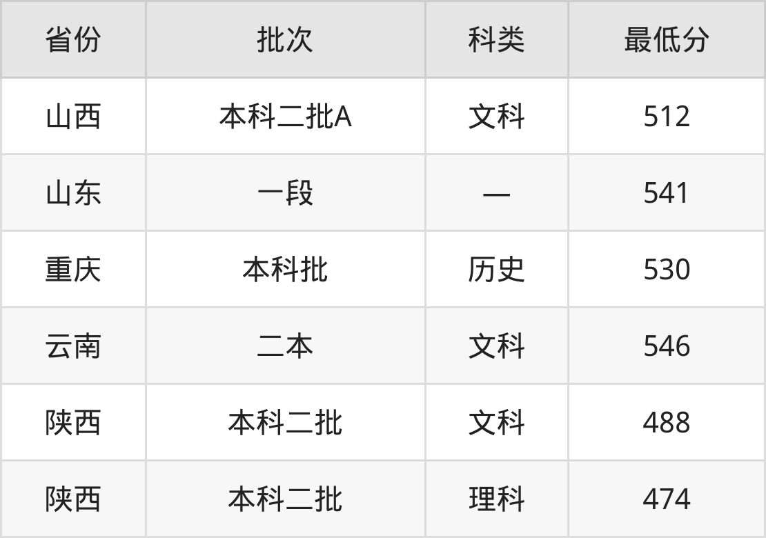 西藏民族大学法学专业在全国各省最低录取分数线为474分(陕西理科),除此之外,在其余地区的最低分为山西文科512分、山东541分、重庆历史类530分、云南文科546分等,以上数据均为2024年数据,供2025年高考生参考。