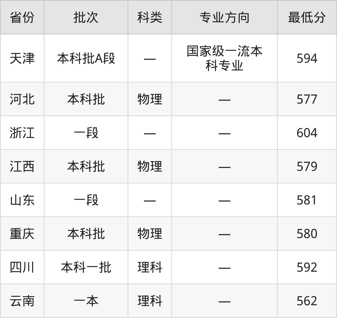 华侨大学电子科学与技术专业录取分数线从562分到604分不等,最低分数线如下: