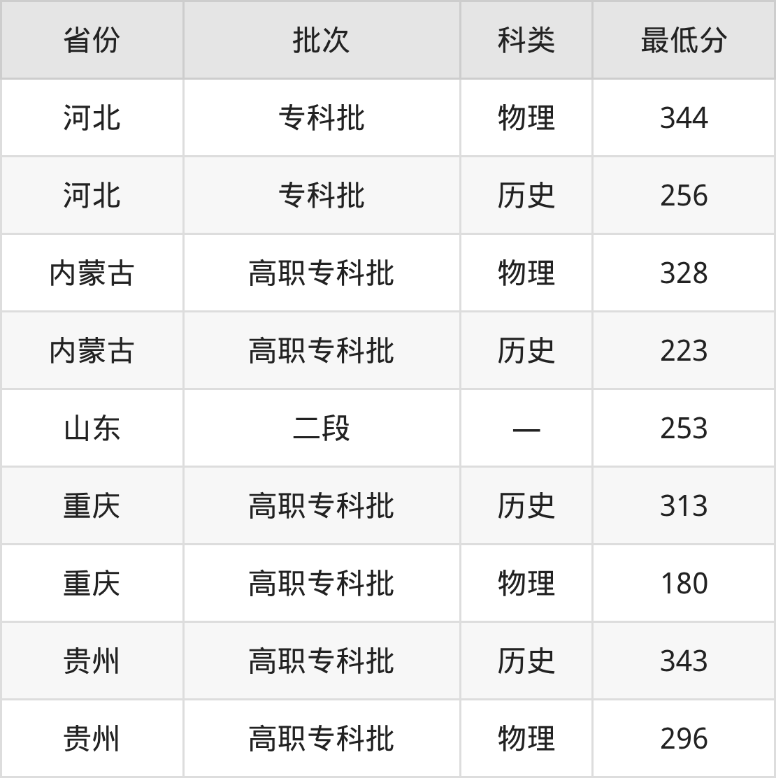 桂林生命与健康职业技术学院康复治疗技术专业在全国各省最低录取分数线为180分(重庆物理类),除此之外,在其余地区的最低分为贵州物理类296分、河北历史类256分、内蒙古历史类223分、山东253分等,以上数据均为2025年数据,供2026年高考生参考。