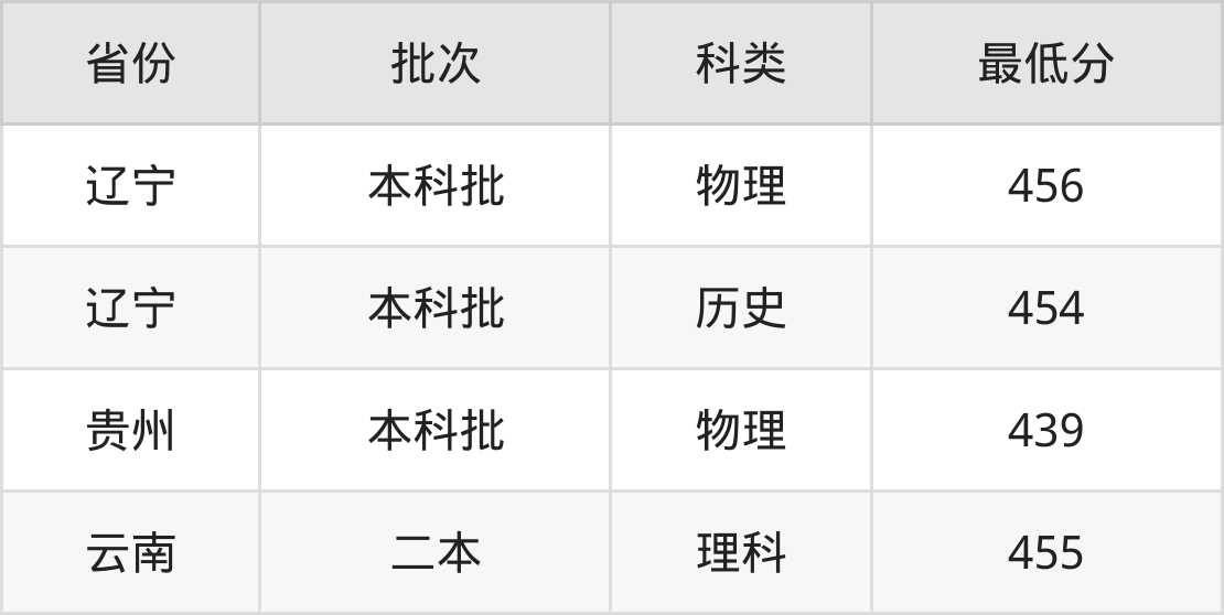 辽东学院服装设计与工程专业录取分数线从439分到456分不等,最低分数线如下:
