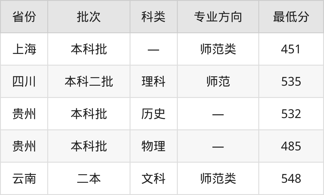 南京晓庄学院小学教育专业录取分数线从451分到548分不等,最低分数线如下: