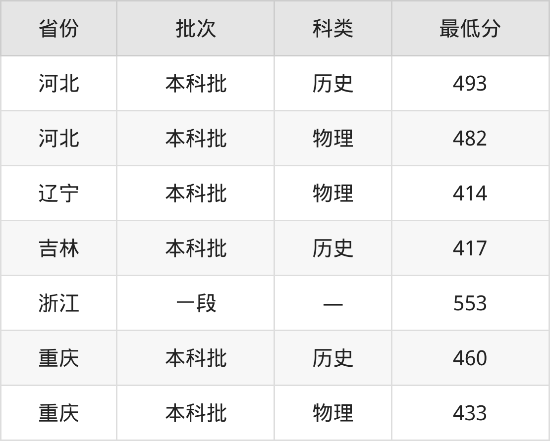 福州外语外贸学院审计学专业在全国各省最低录取分数线为414分(辽宁物理类),除此之外,在其余地区的最低分为河北物理类482分、吉林历史类417分、浙江553分、重庆物理类433分,以上数据均为2025年数据,供2026年高考生参考。