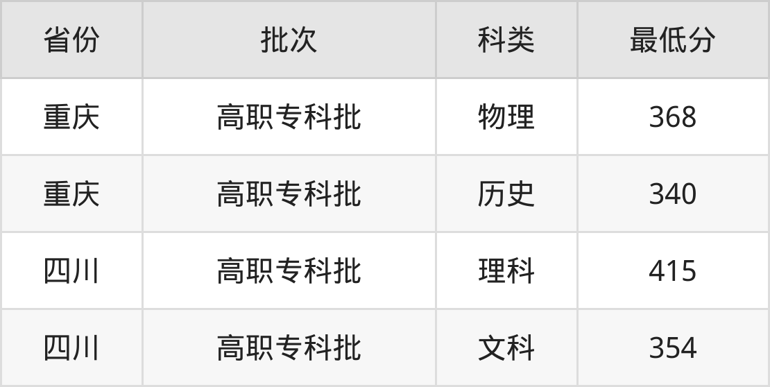 黑龙江农业工程职业学院数字媒体技术专业在全国各省最低录取分数线为340分(重庆历史类),除此之外,在其余地区的最低分为四川文科354分,以上数据均为2024年数据,供2025年高考生参考。