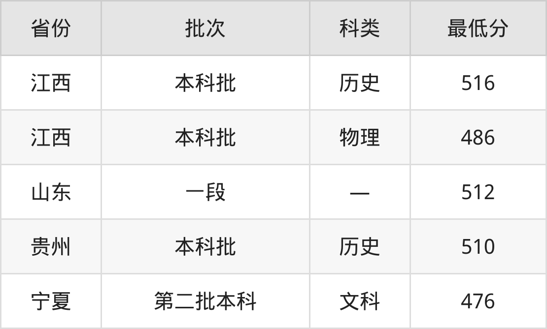上饶师范学院新闻学专业在全国各省最低录取分数线为476分(宁夏文科),除此之外,在其余地区的最低分为江西物理类486分、山东512分、贵州历史类510分,以上数据均为2024年数据,供2025年高考生参考。