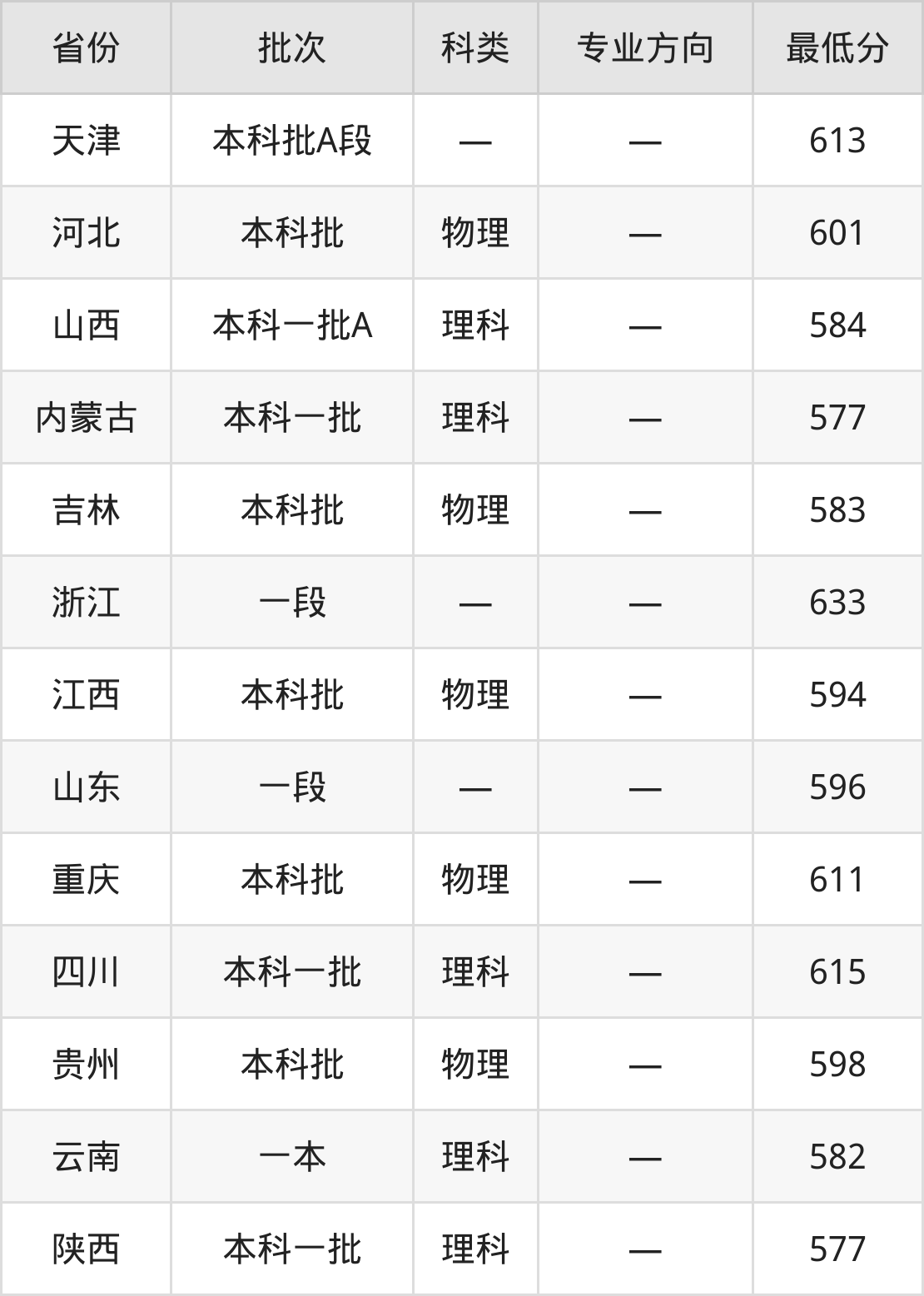 贵州大学计算机类专业录取分数线从577分到633分不等,在部分地区的最低分数线如下: