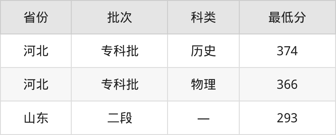 滨州科技职业学院大数据与会计专业在全国各省最低录取分数线为293分(山东),除此之外,在其余地区的最低分为河北物理类366分,以上数据均为2025年数据,供2026年高考生参考。