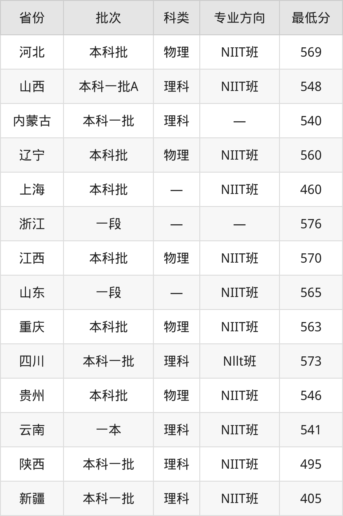 石河子大学软件工程专业录取分数线从405分到576分不等,在部分地区的最低分数线如下: