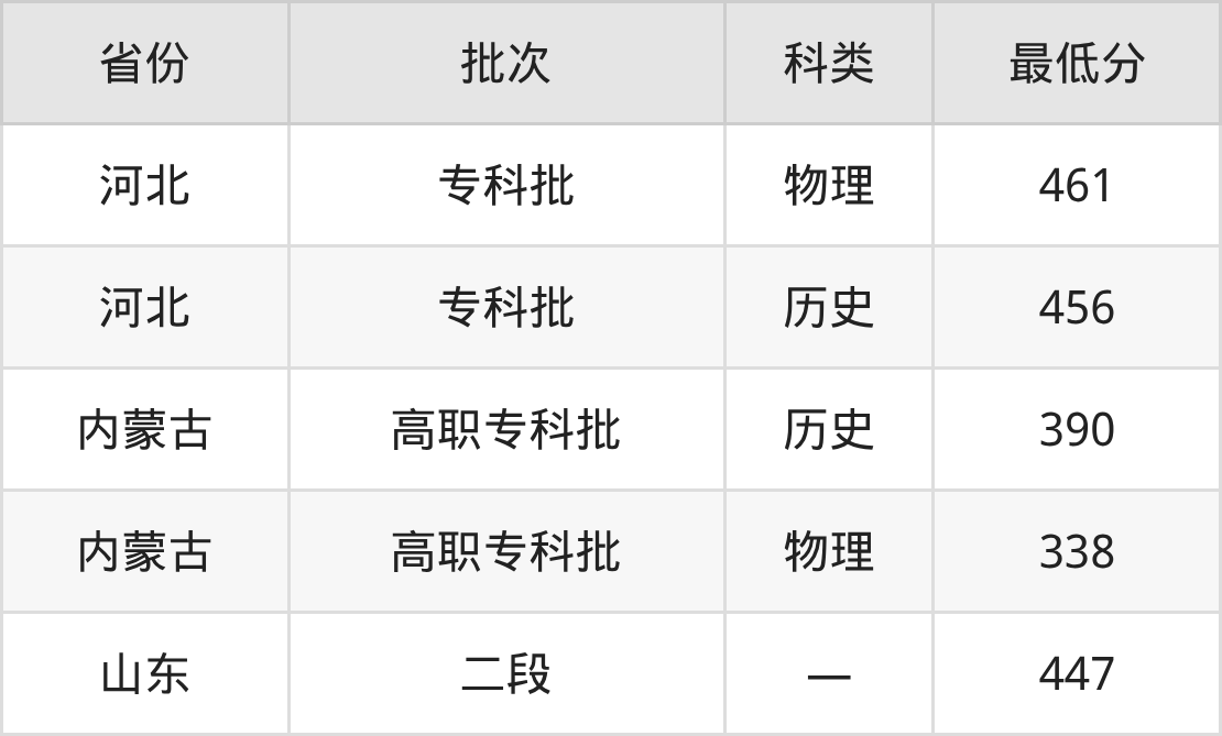 陕西邮电职业技术学院数字媒体技术专业录取分数线从338分到461分不等,最低分数线如下: