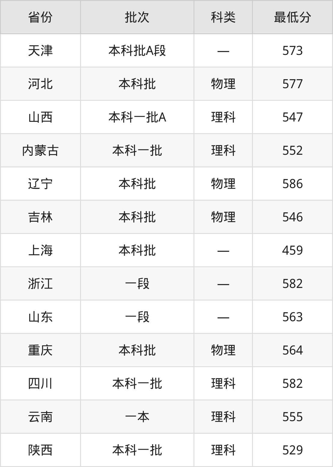 内蒙古:理科最低552分
