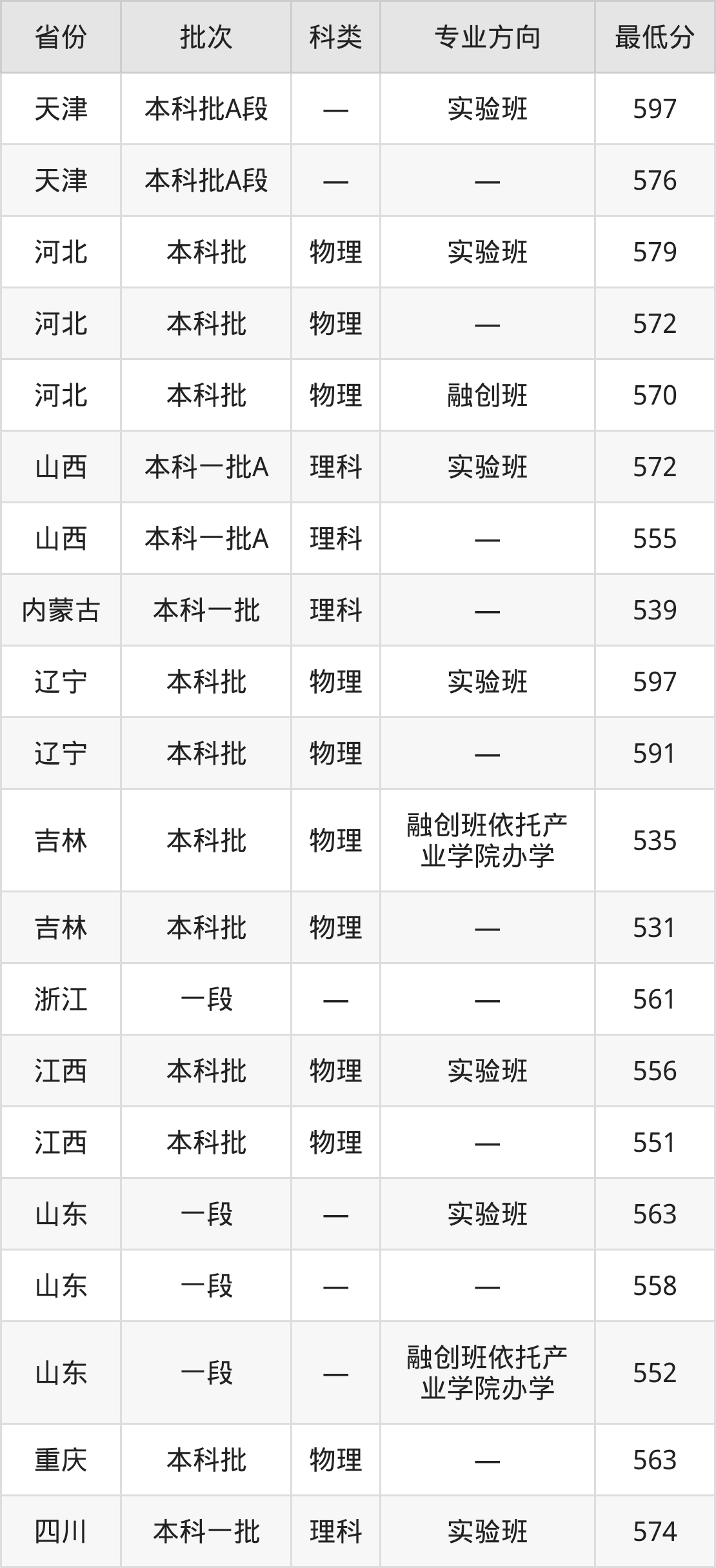 东北石油大学机械设计制造及其自动化专业在全国各省录取分数线: