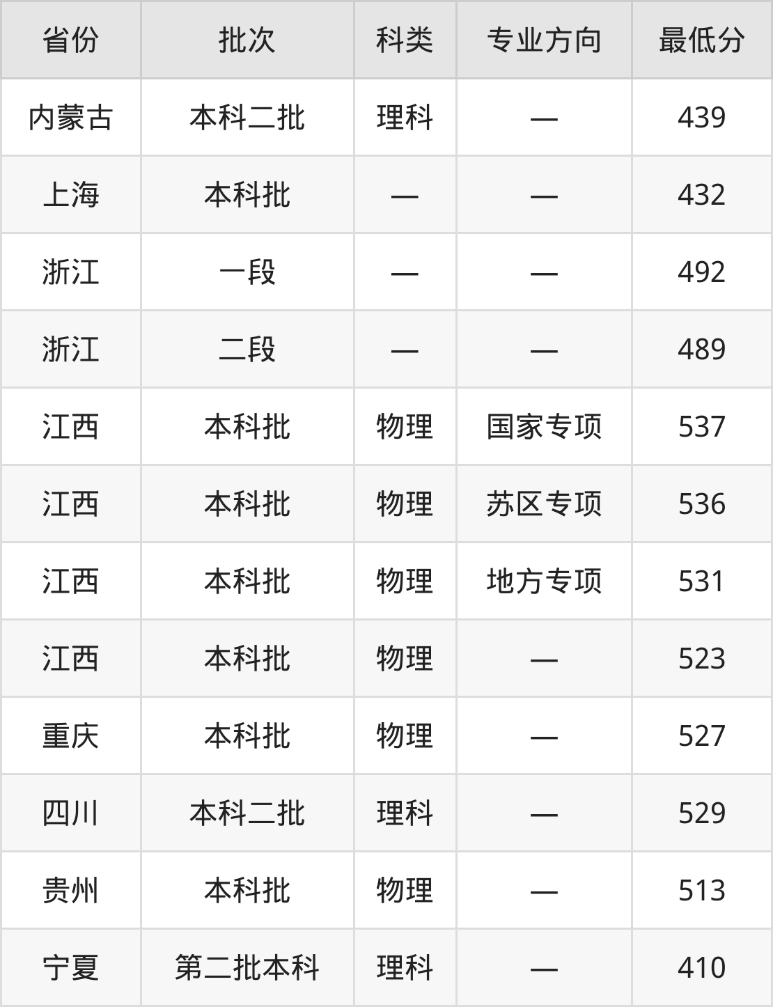 宁夏:理科最低410分
