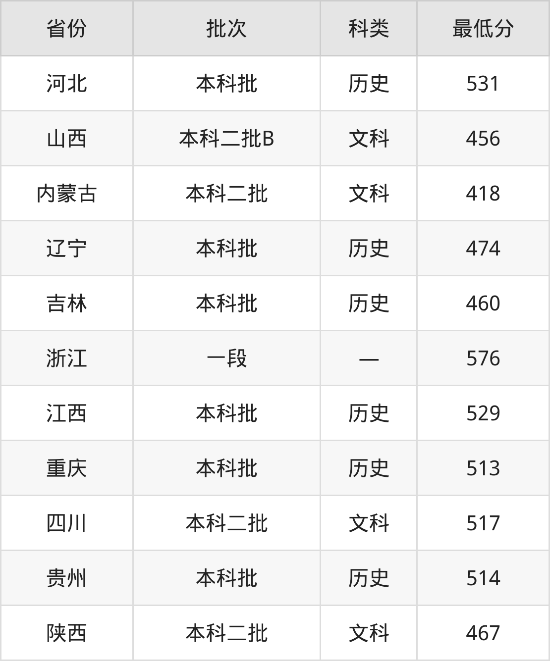 怀化学院网络与新媒体专业录取分数线从418分到576分不等,在部分地区的最低分数线如下:
