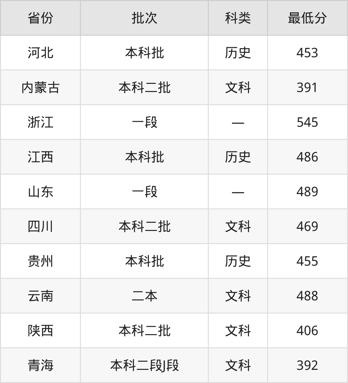 内蒙古:文科最低391分
