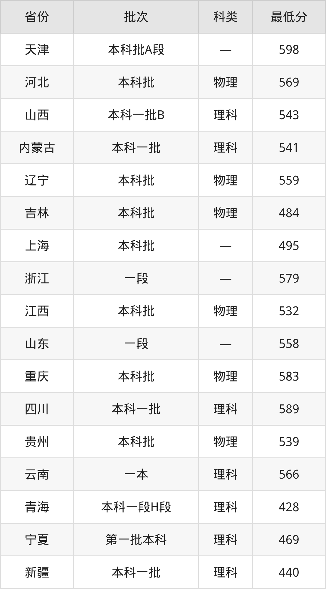内蒙古:理科最低541分