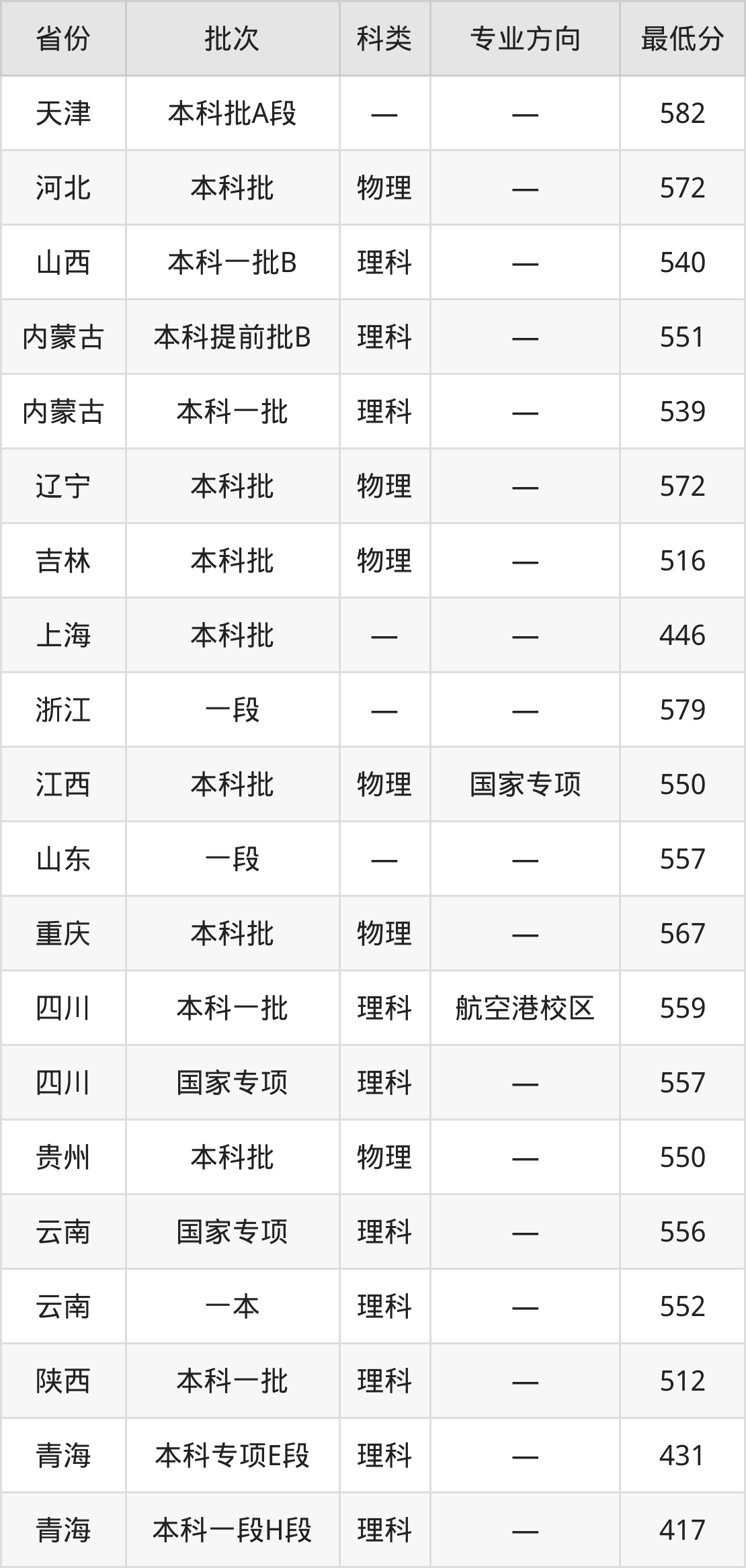 西南民族大学计算机类专业录取分数线从417分到582分不等,在部分地区的最低分数线如下: