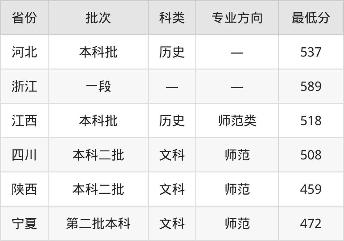 池州学院汉语言文学专业在全国各省最低录取分数线为459分(陕西文科),除此之外,在其余地区的最低分为河北历史类537分、浙江589分、江西历史类518分、四川文科508分等,以上数据均为2024年数据,供2025年高考生参考。