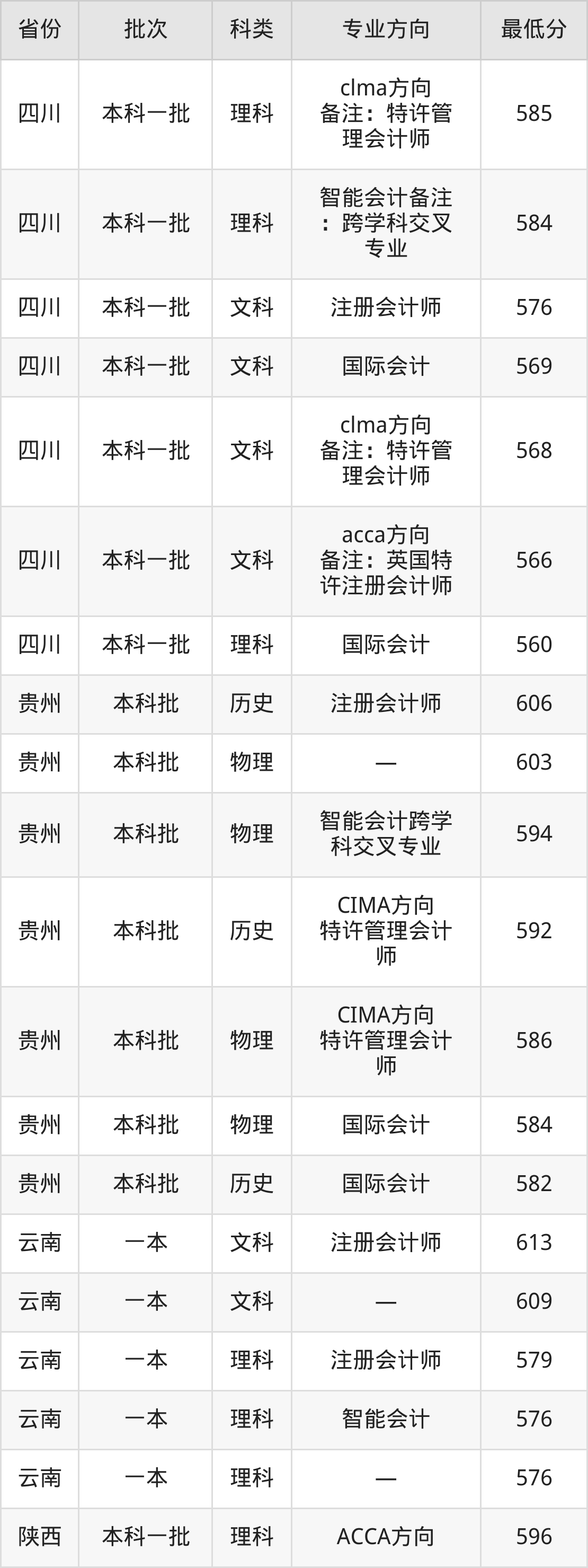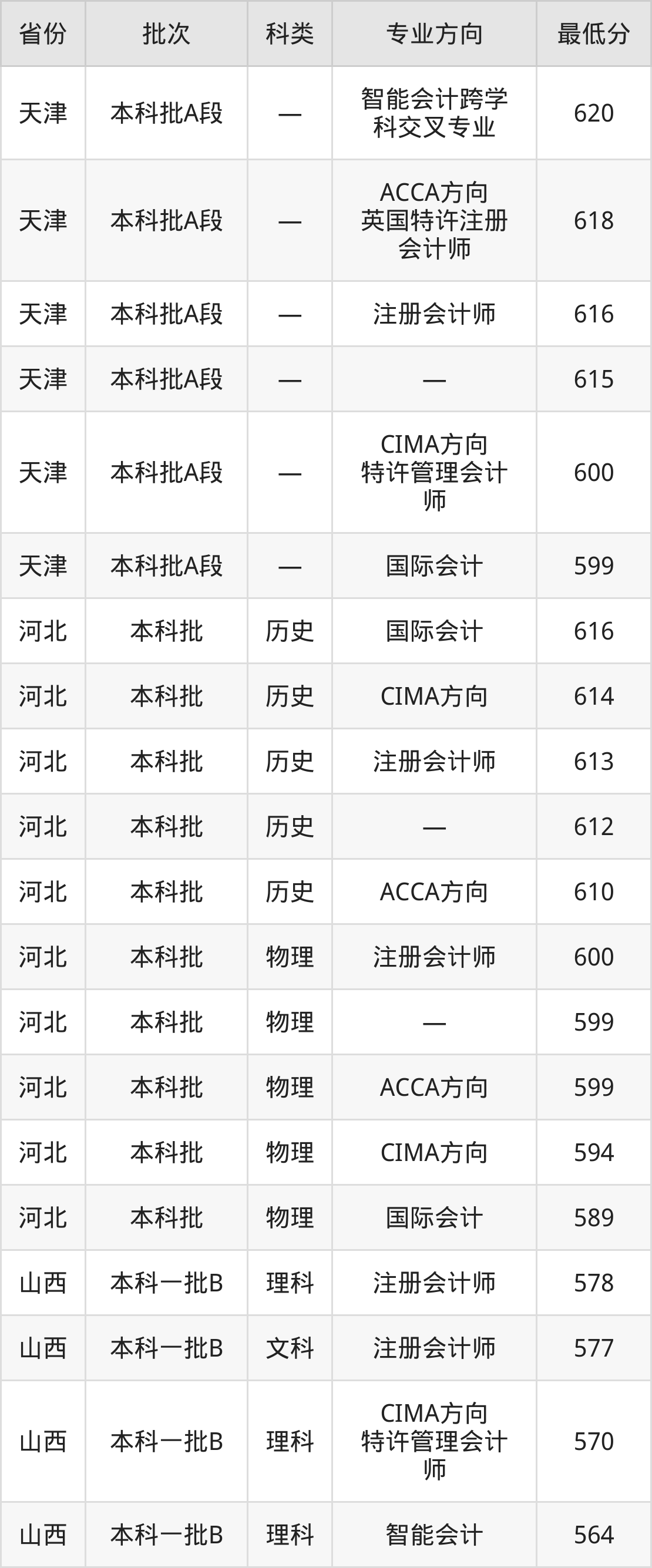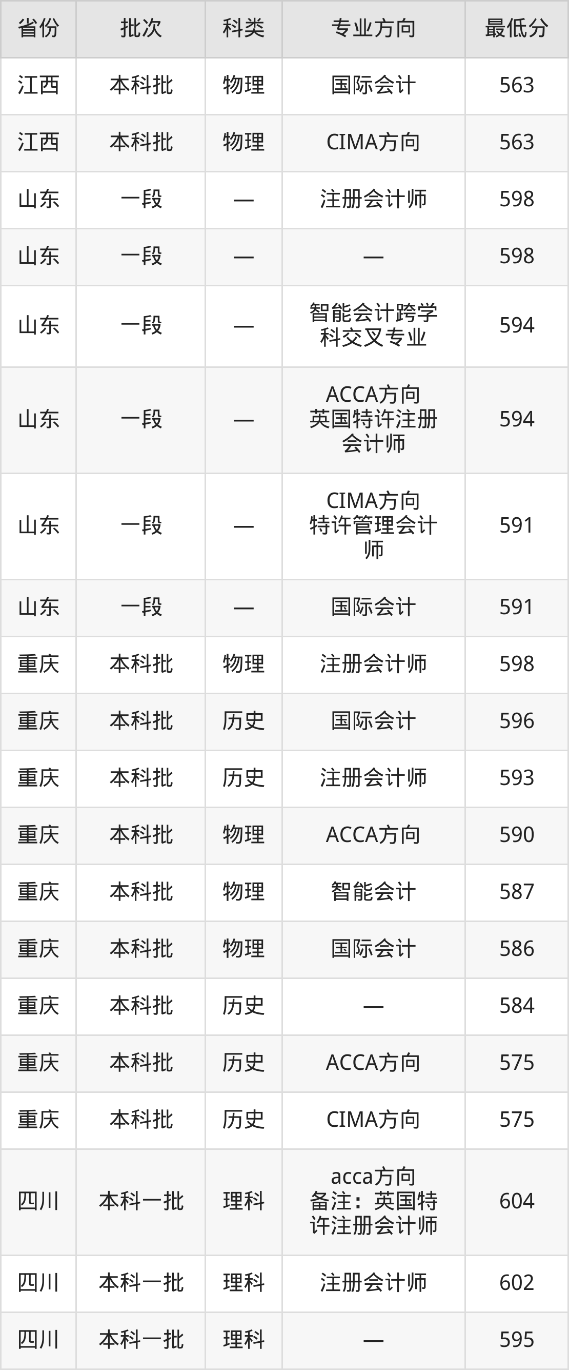 江西财经大学会计学专业录取分数线从453分到647分不等,在部分地区的最低分数线如下: