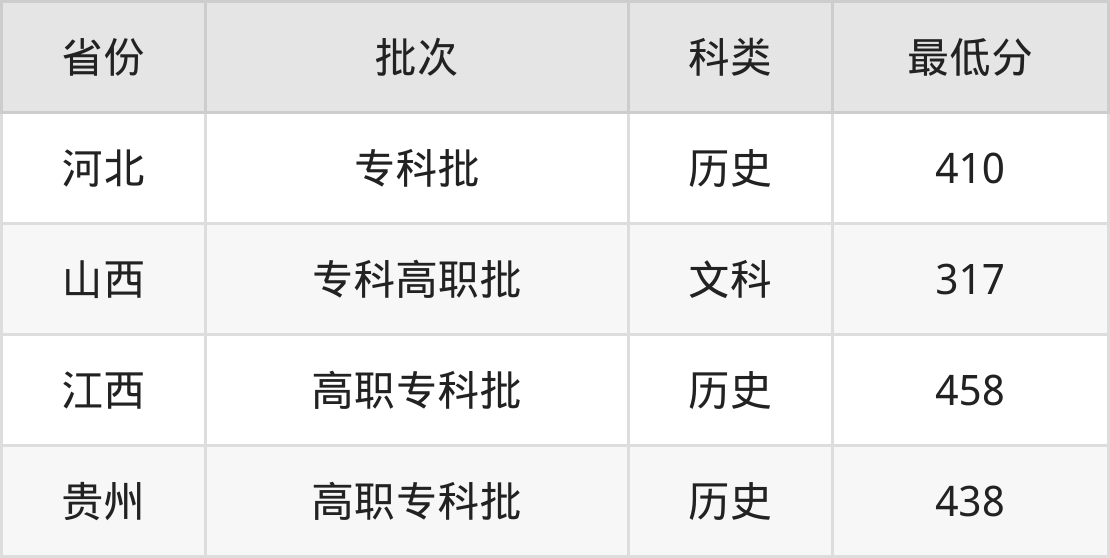 东莞职业技术学院护理专业在全国各省最低录取分数线为317分(山西文科),除此之外,在其余地区的最低分为河北历史类410分、江西历史类458分、贵州历史类438分,以上数据均为2024年数据,供2025年高考生参考。