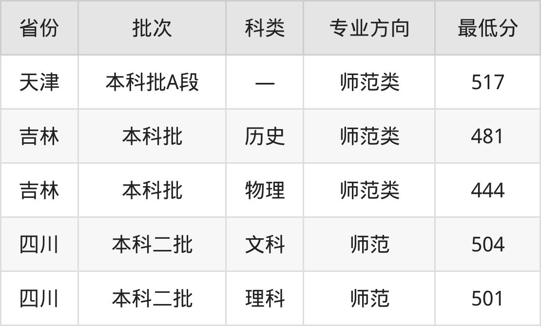 大庆师范学院英语专业录取分数线从444分到517分不等,最低分数线如下: