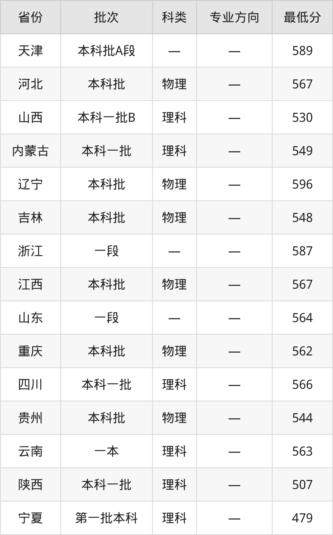 石家庄铁道大学计算机类专业录取分数线从479分到596分不等,在部分地区的最低分数线如下: