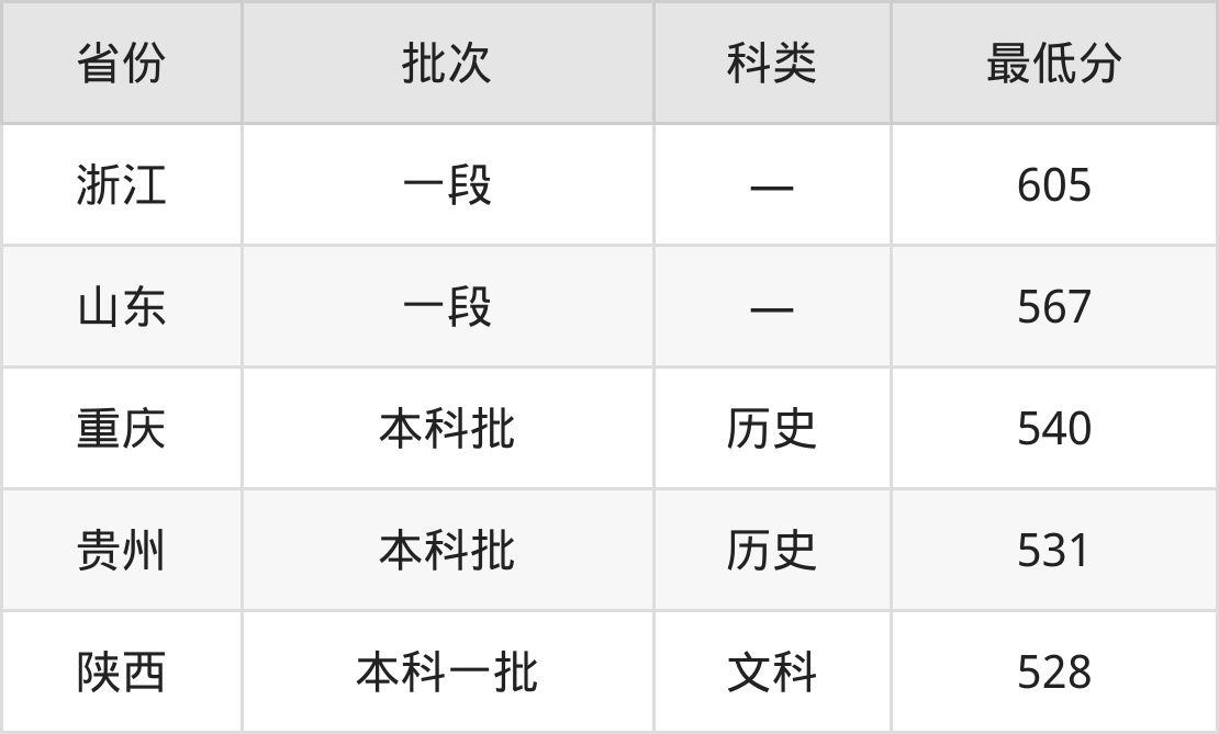 南京工业大学市场营销专业在全国各省最低录取分数线为528分(陕西文科),除此之外,在其余地区的最低分为浙江605分、山东567分、重庆历史类540分、贵州历史类531分,以上数据均为2024年数据,供2025年高考生参考。