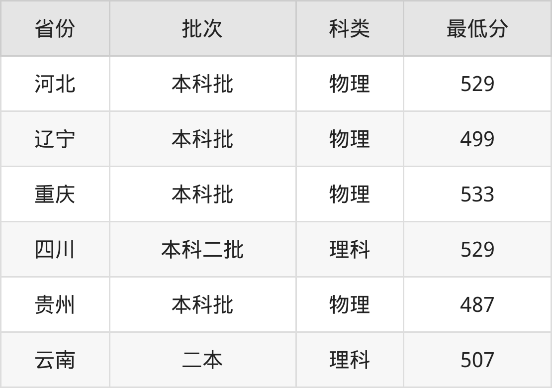 辽宁中医药大学中药学专业在全国各省最低录取分数线为487分(贵州物理类),除此之外,在其余地区的最低分为河北物理类529分、辽宁物理类499分、重庆物理类533分、四川理科529分等,以上数据均为2024年数据,供2025年高考生参考。