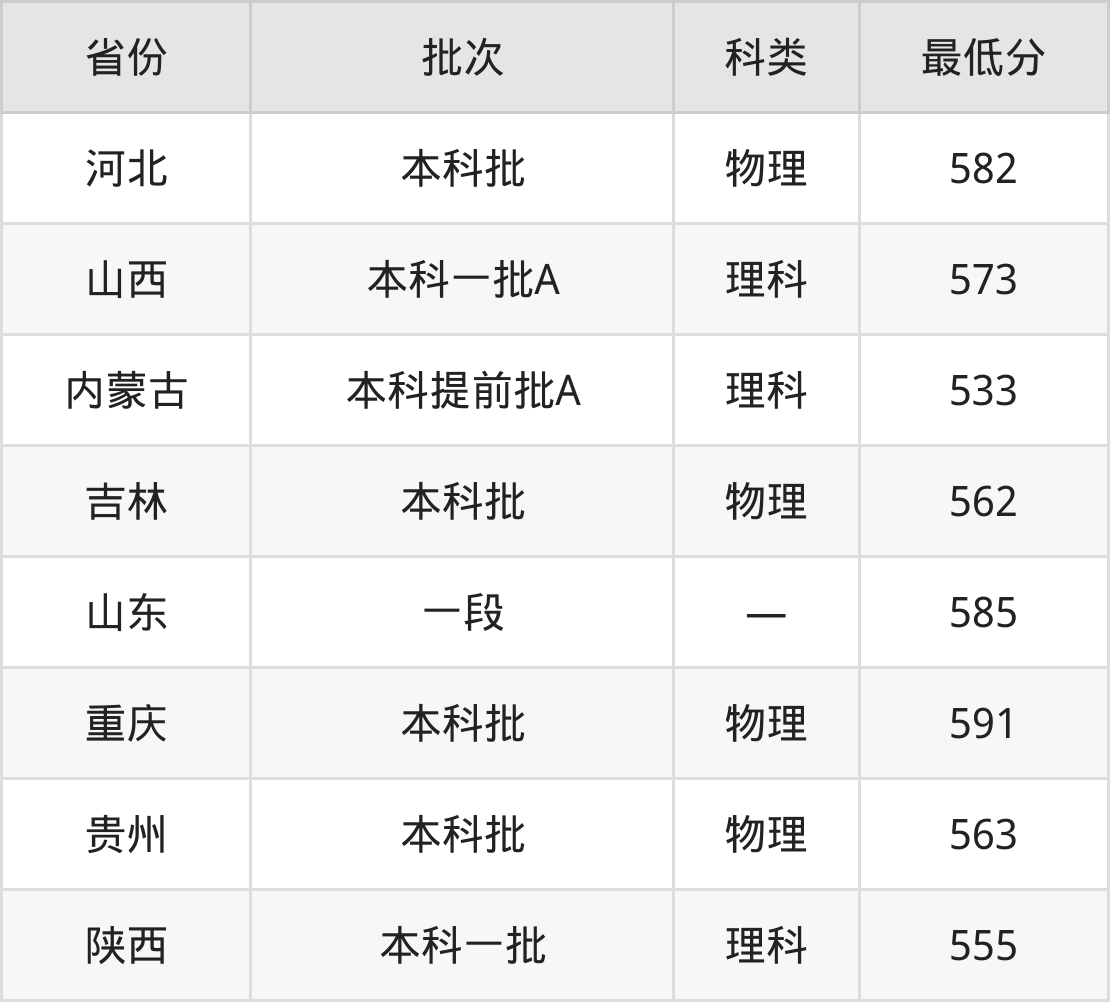 贵州大学物理学专业在全国各省最低录取分数线为533分(内蒙古理科),除此之外,在其余地区的最低分为重庆物理类591分、贵州物理类563分、陕西理科555分、河北物理类582分等,以上数据均为2024年数据,供2025年高考生参考。