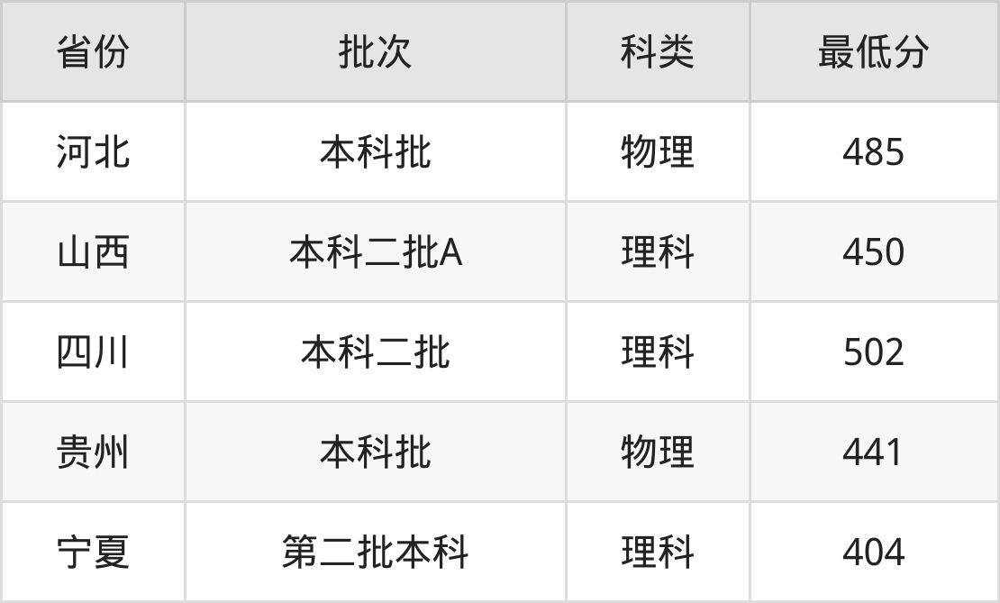 河北科技师范学院酿酒工程专业在全国各省最低录取分数线为404分(宁夏理科),除此之外,在其余地区的最低分为河北物理类485分、山西理科450分、四川理科502分、贵州物理类441分等,以上数据均为2024年数据,供2025年高考生参考。