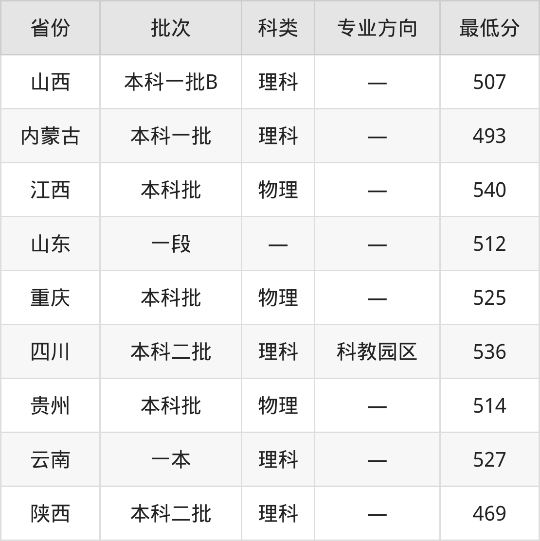 山西:理科最低507分