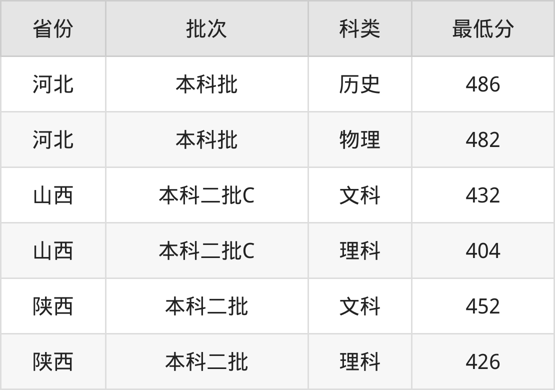 山西工商学院会计学专业录取分数线从404分到486分不等,最低分数线如下: