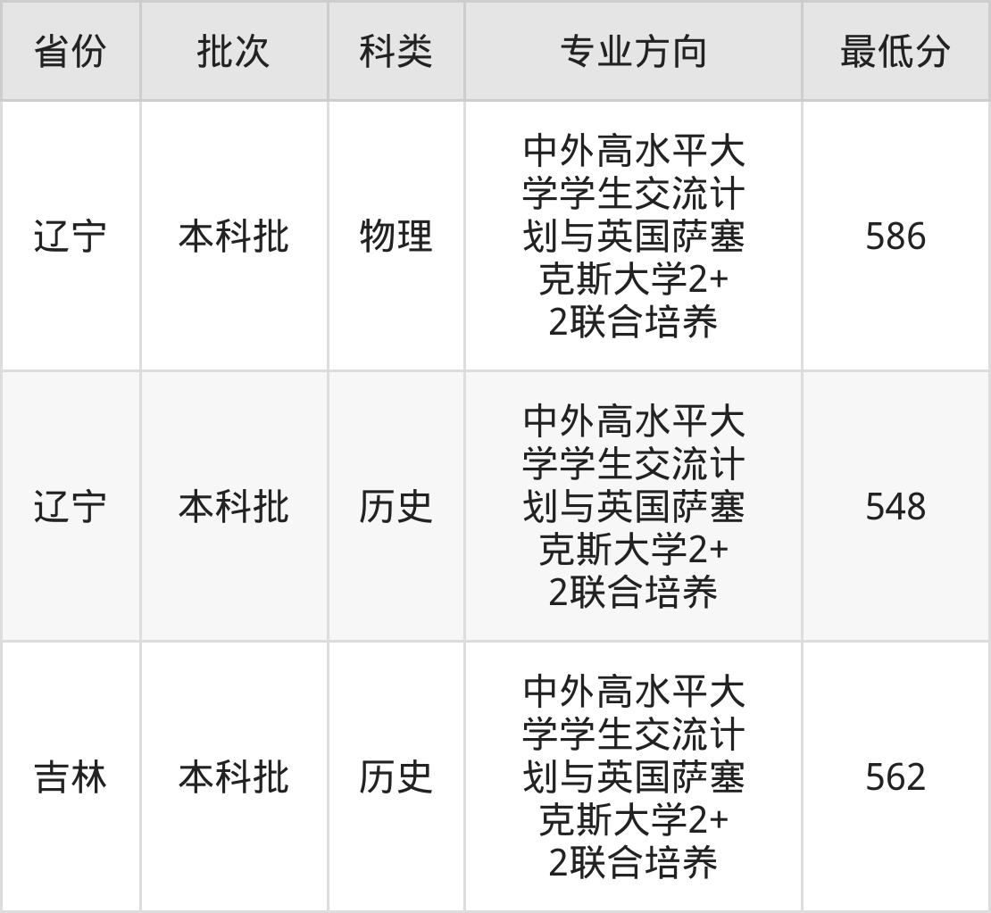 | 历史类 | 中外高水平大 学学生交流计 划与英国萨塞 克斯大学2+ 2联合培养 | 3 |