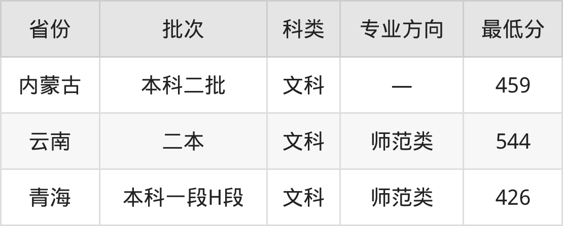 岭南师范学院思想政治教育专业在全国各省录取分数线: