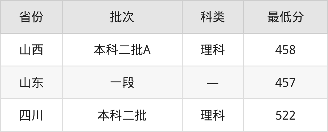 甘肃农业大学草业科学专业在全国各省最低录取分数线为457分(山东),除此之外,在其余地区的最低分为山西理科458分、四川理科522分,以上数据均为2024年数据,供2025年高考生参考。