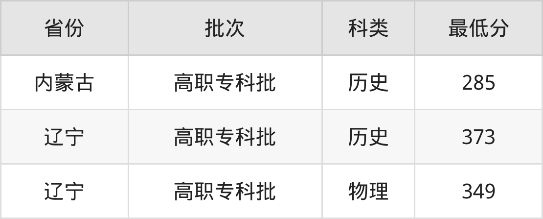 辽宁农业职业技术学院现代物流管理专业录取分数线从285分到373分不等,最低分数线如下:
