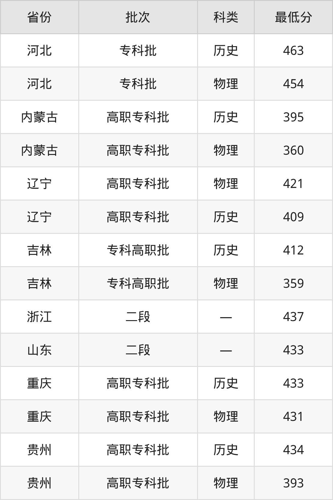 广西电力职业技术学院电力系统自动化技术专业在全国各省最低录取分数线为359分(吉林物理类),除此之外,在其余地区的最低分为河北物理类454分、内蒙古物理类360分、浙江437分、山东433分等,以上数据均为2025年数据,供2026年高考生参考。