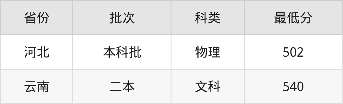 广西医科大学健康服务与管理专业在全国各省最低录取分数线为502分(河北物理类),除此之外,在其余地区的最低分为云南文科540分,以上数据均为2024年数据,供2025年高考生参考。