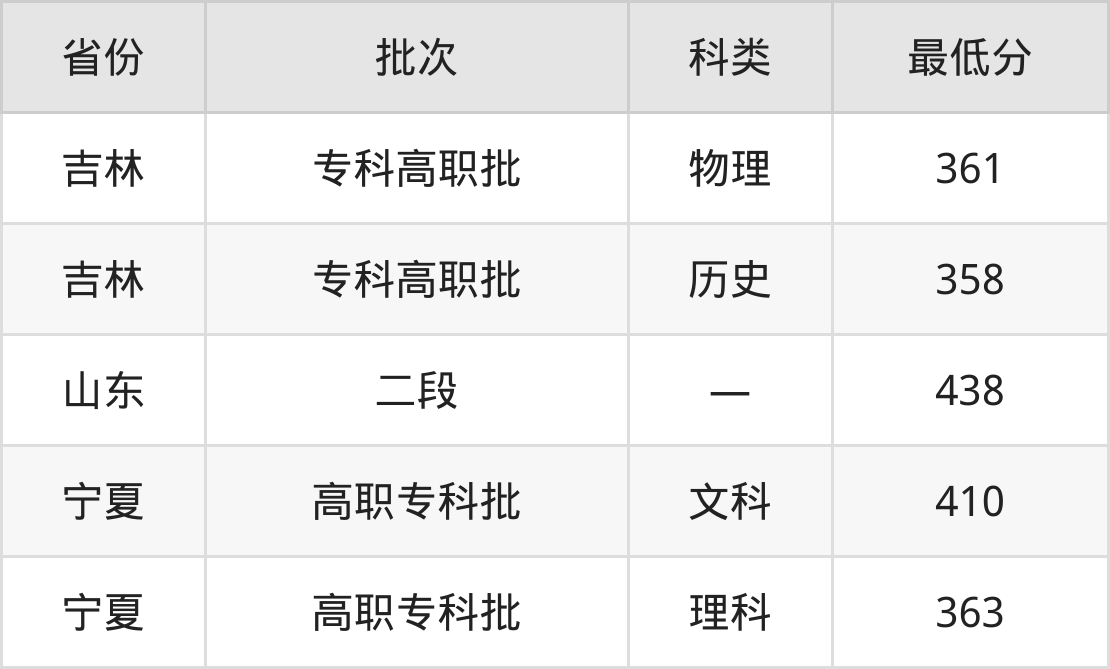 淄博职业技术大学药学专业在全国各省最低录取分数线为358分(吉林历史类),除此之外,在其余地区的最低分为山东438分、宁夏理科363分,以上数据均为2024年数据,供2025年高考生参考。