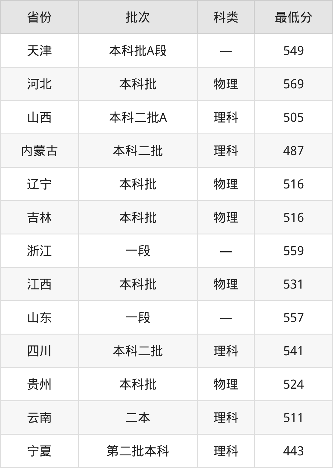 内蒙古:理科最低487分
