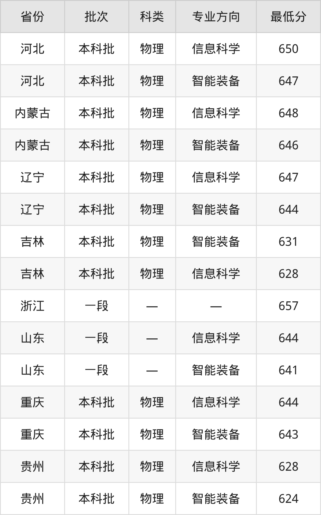 中国农业大学理科试验班专业在全国各省最低录取分数线为624分(贵州物理类),除此之外,在其余地区的最低分为重庆物理类643分、辽宁物理类644分、浙江657分、山东641分等,以上数据均为2025年数据,供2026年高考生参考。