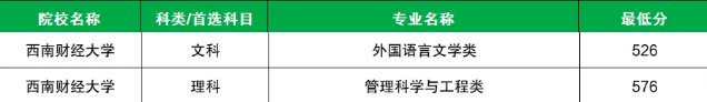 学校国家专项计划文科最低分数线是526分,对应的招生专业是外国语言文学类;理科最低分数线是576分,对应的招生专业是管理科学与工程类。