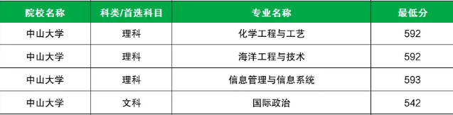 学校国家专项计划文科最低分数线是542分,对应的招生专业是国际政治;理科最低分数线是592分,对应的招生专业是化学工程与工艺、海洋工程与技术。