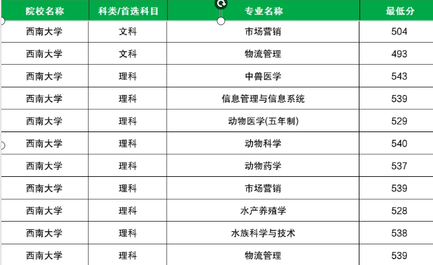 学校国家专项计划文科最低分数线是493分,对应的招生专业是物流管理;理科最低分数线是528分,对应的招生专业是水产养殖学。