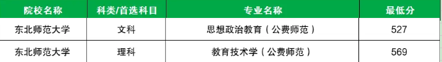 8、东北师范大学:文科最低527分;理科最低559分