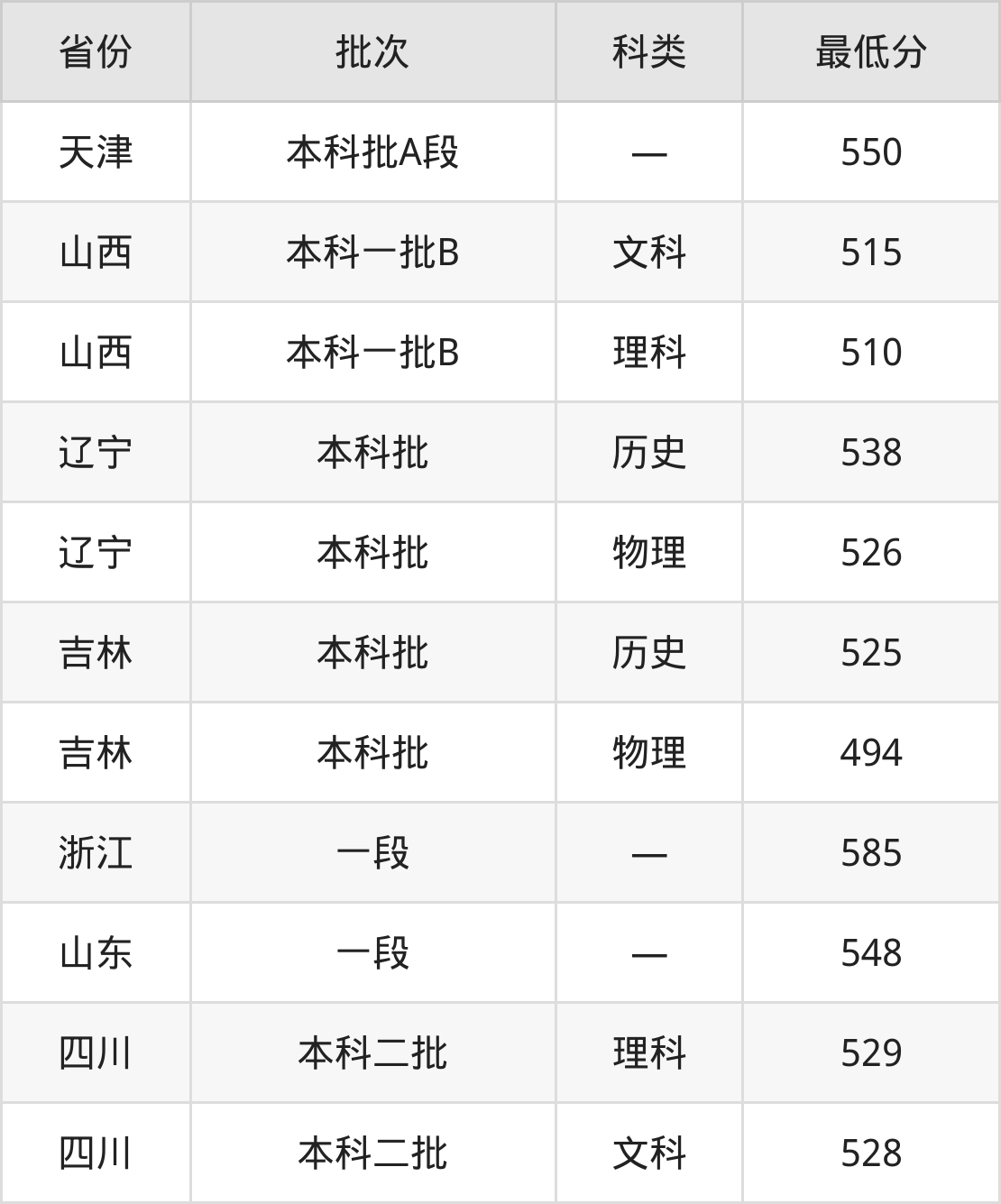 吉林财经大学英语专业录取分数线从494分到585分不等,最低分数线如下: