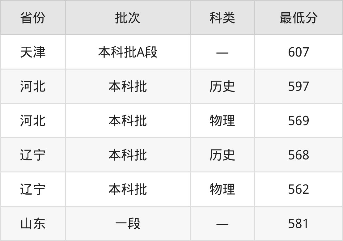 河北工业大学日语专业录取分数线从562分到607分不等,最低分数线如下: